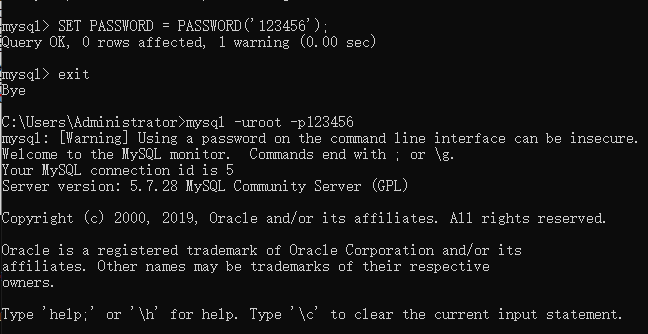 使用密码进入mysql