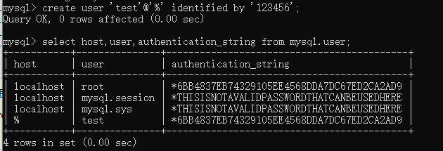 这里创建了一个用户名为test,密码为123456,允许外网登录的用户